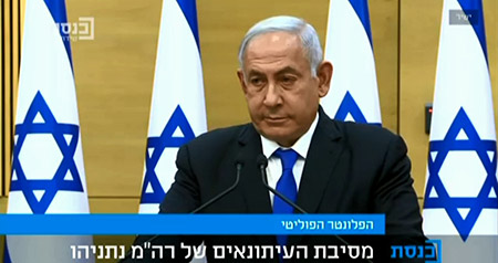 يعقد رئيس الحكومة بنيامين نتنياهو في هذه الاثناء مؤتمرا صحفيا في قاعة القدس في الكنيست. وقال نتنياهو موجها حديثه لنفتالي بينيت: