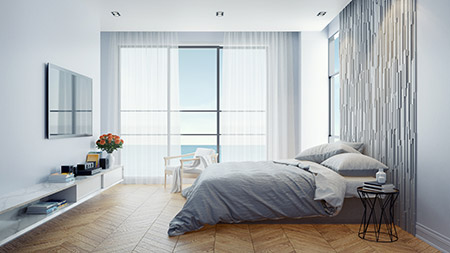 - تختار الستائر البسيطة الخالية من الإكسسوارات، مع الدمج بين القماش السميك (المخمل، مثلاً) وذلك الخفيف (الفوال).