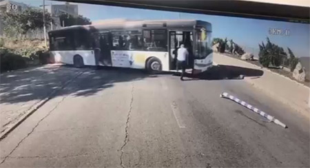 حادثة كادت أن تنتهي بكارثة لا قدر الله لولا انتباه السائق ، حيث بدأت حافلة كانت تقف في شارع الجيش الإسرائيلي في صفد بالتدحرج نحو منحدر وهي مليئة بطالبات ،