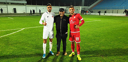 محمد سليمان يتوسط اللاعبين محمد محاجنة من اليمين وعميد محاجنة ، صورة من الفريق