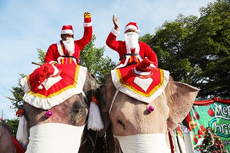 وتزور الأفيال مدارس المنطقة في عيد الميلاد منذ 20 عاما وعادة ما توزع الحلوى والألعاب بخراطيمها.